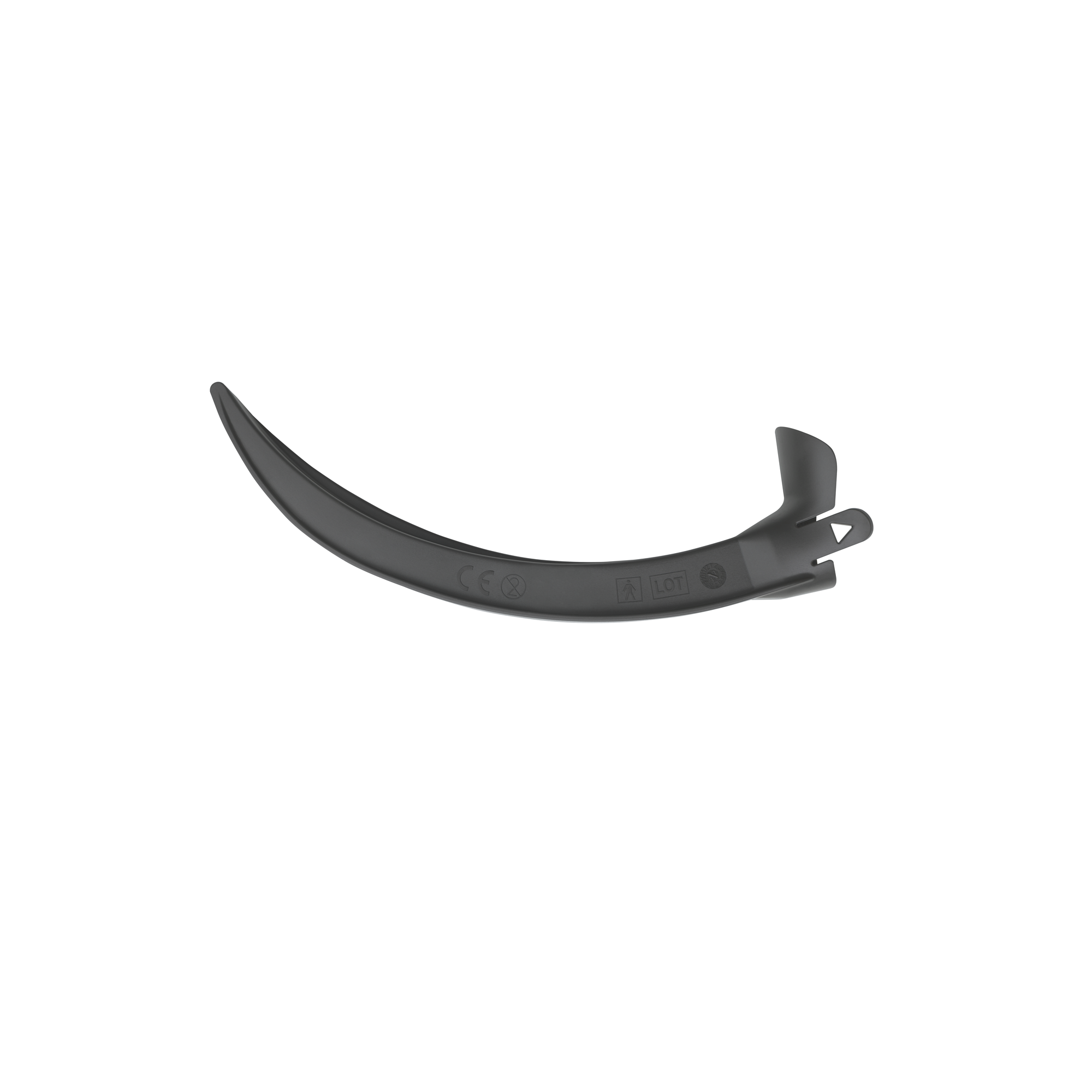 Ta jednorazowa łyżka HEINE visionPRO HyMac 3, o bardziej wyraźnym wygięciu jest specjalnie dedykowana do takich sytuacji. Jest ona zakrzywiona w części dystalnej, co powoduje jej gwałtowne pochylenie za podstawą języka, pomagając w ten sposób „prawie samodzielnie” unieść nagłośnię